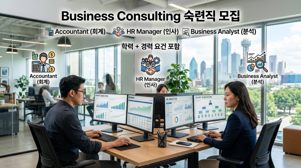 이번 포지션은 단순한 사무직이 아니라 미국 내 기업 컨설팅 회사 소속 전문직군입니다.